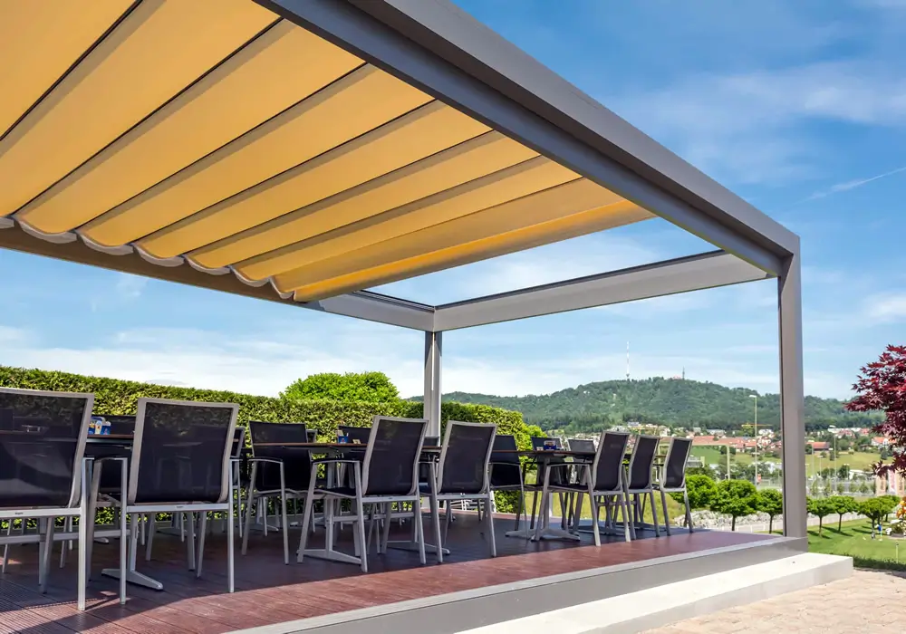 Com o Toldos Trilho, você tem os dois mundos: proteção quando precisa, céu aberto quando quiser.